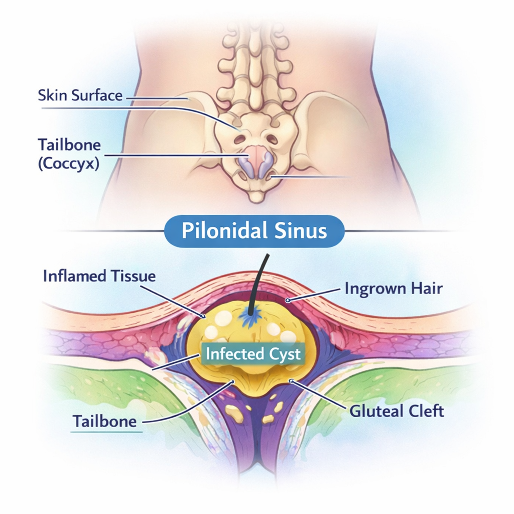 Tailbone ke paas infection jo dard aur pus ka sabab banta hai
